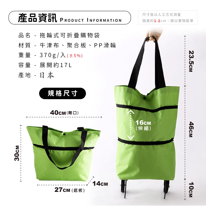 7分鐘前【爆款折疊購物車袋手拉車】手提袋購物車隨意切換一物兩用,容量大可裝多物品 省力貼心 環保生活從我做起 - 【買一送一 NT$899二入組】